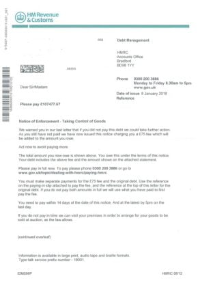 In order to prevent the taking control of goods and legal action, it’s always best to contact HMRC and/or your landlord to try and negotiate a payment plan.
