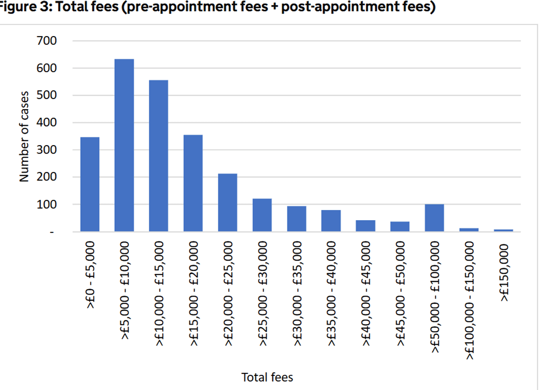 Median Pre appointment fees were £4000 see the chart below that shows total fees.